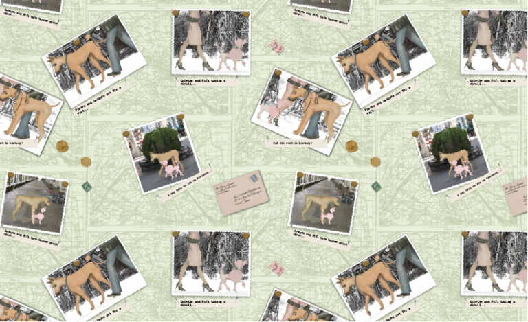 Fifi is pure Parisian charm – une femme fatale with a wink, a smile and just the right amount of glitter. She takes her devoted human, Collette, on daily strolls through the city’s colorful blooming gardens, with the air full of the floral perfume!
